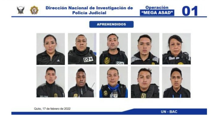 En total fueron diez personas, nueve ecuatorianos y un colombiano, las detenidas durante el operativo “Mega Asad 01”, realizado el jueves 17 de febrero de 2022. Según informó la Policía Nacional, este grupo se encontraba realizando un “control anti delincuencial” en las calles Piedra y Morales, en el Centro Histórico de la capital.