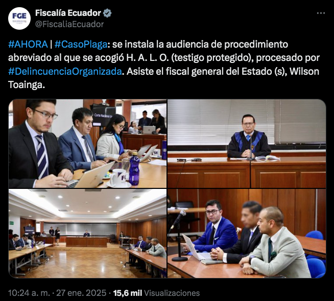 Un juez de la Corte Nacional dictó la sentencias para dos nuevos procesados por el Caso Plaga, por delincuencia organizada, tras acogerse al procedimiento abreviado, como lo realizó Lenin Vimos, el cabecilla de su estructura criminal.