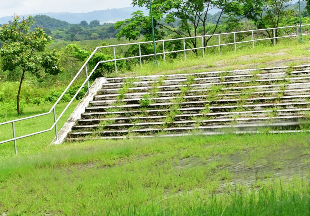 Otras observaciones son que el césped del área de picnic está lleno de maleza frondosa, las bancas están cubiertas de moho, existe un poste ornamental inclinado, las escaleras que dan acceso a la zona de pícnic están cubiertas de maleza. Lo más evidente es el área del lago artificial, cuyo espejo de agua no se puede observar porque está lleno de lechuguines.
