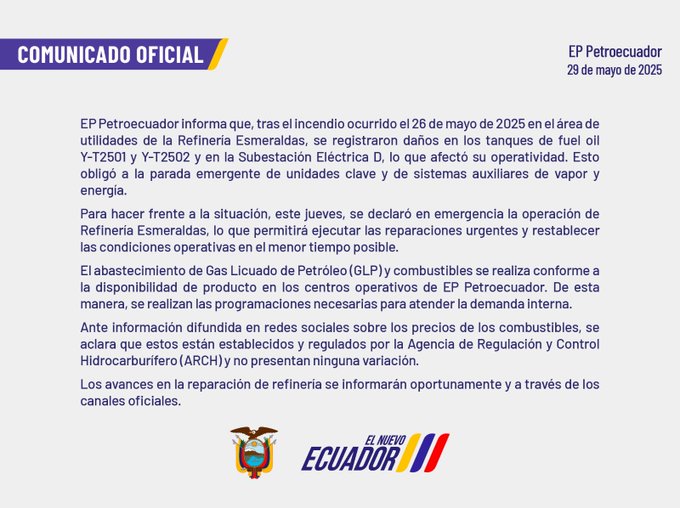 Enlace del comunicado en X: https://x.com/EPPetroecuador/status/1928233547711598895