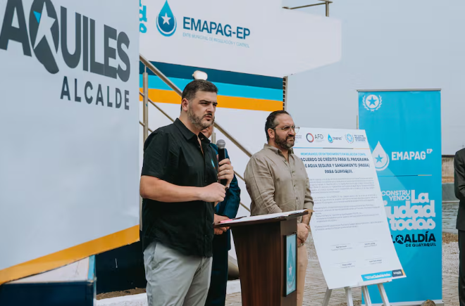 La Alcaldía de Guayaquil y la Agencia Francesa para el Desarrollo (AFD) firmaron un acuerdo ligado a un crédito de USD 40 millones destinado a un programa para ampliar la cobertura de agua potable y mejorar el tratamiento de aguas residuales.