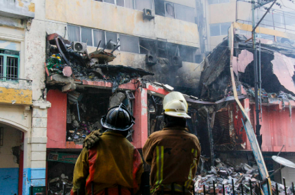 «La carga calorífica es inmensa, sobre los 800 grados, y eso es lo que nos ha complicado el trabajo. Uno de los edificios ya colapsó, se vino abajo al doblarse la estructura metálica por la temperatura. Ahora vamos a proteger el otro, porque el otro ya está cedido para atrás también», explicó el miércoles Martín Cucalón, primer jefe del Cuerpo de Bomberos de Guayaquil.